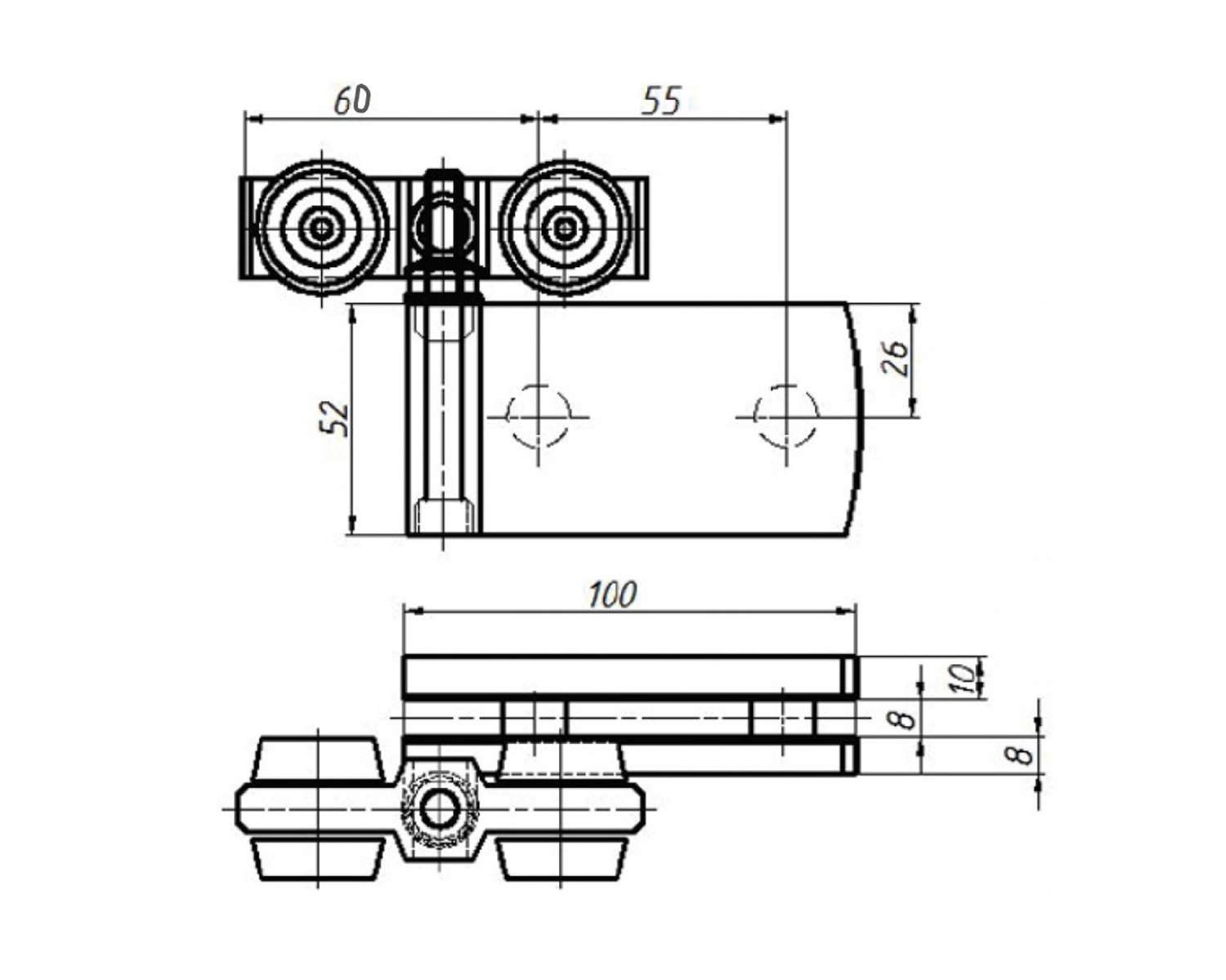Петля для розсувних систем встановлюється на останній стулці та направляє її рух по направляючій рейці 42*42.