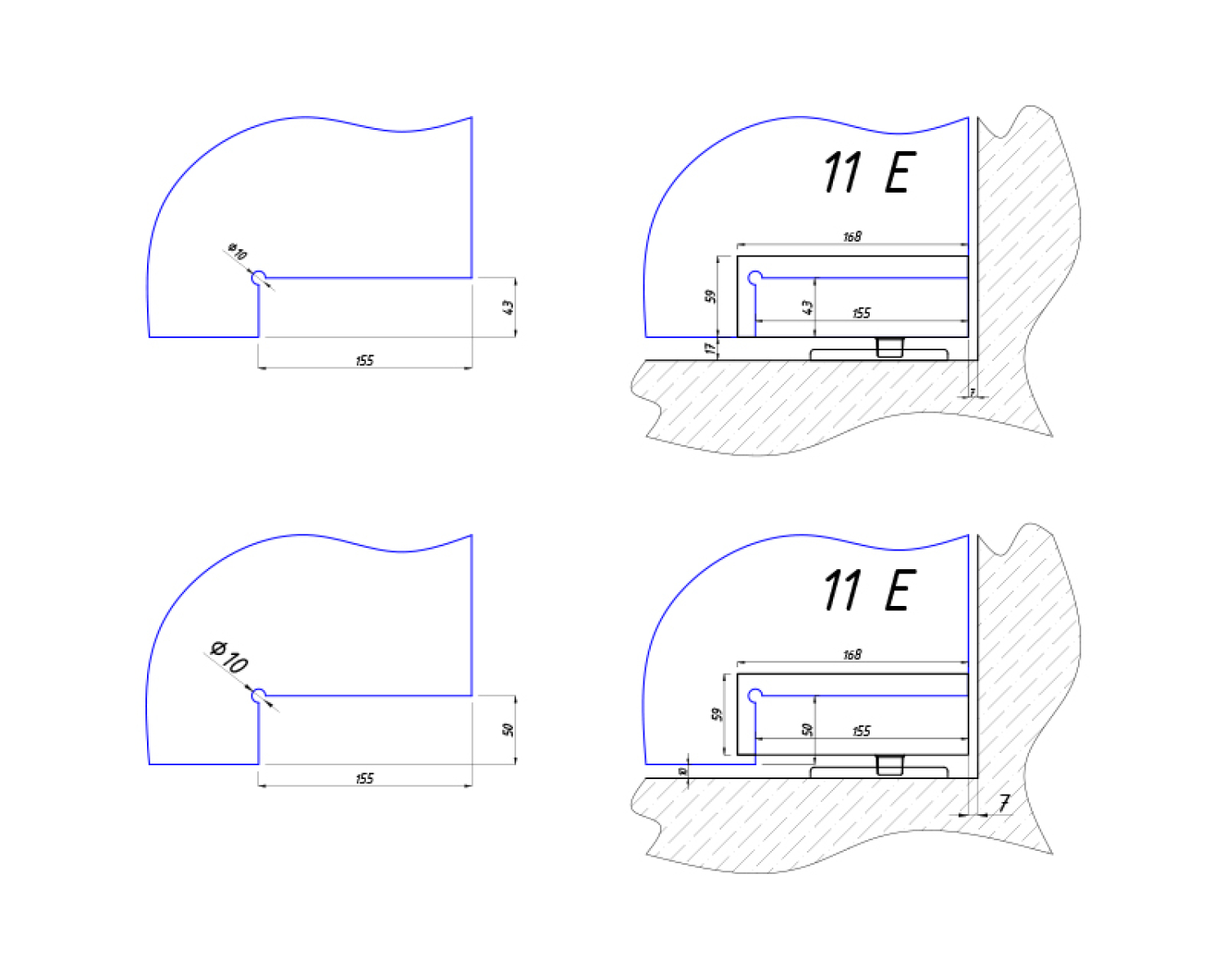 У випадку з петлею SF-11E кріплення петлі до підлоги здійснюється всього чотирма дюбелями, що значно спрощує та прискорює монтаж маятникової скляної перегородки.