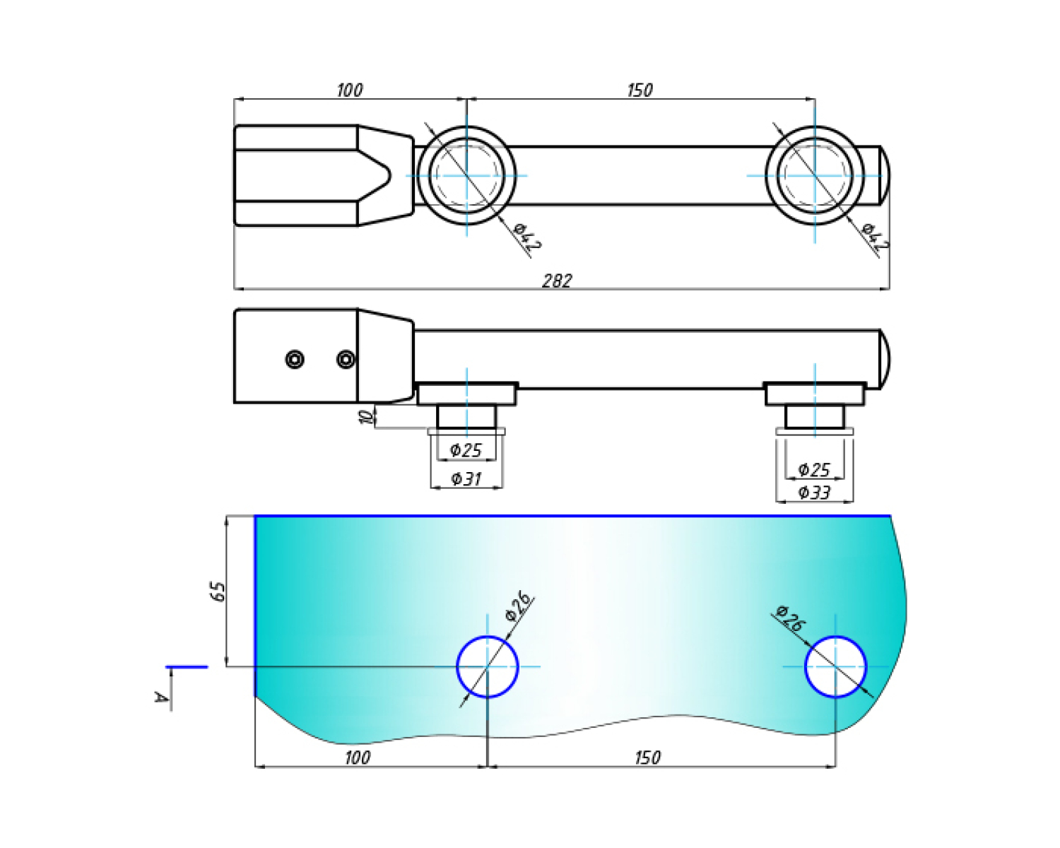 Використовується в маятникових суцільноскляних конструкціях з товщиною скла