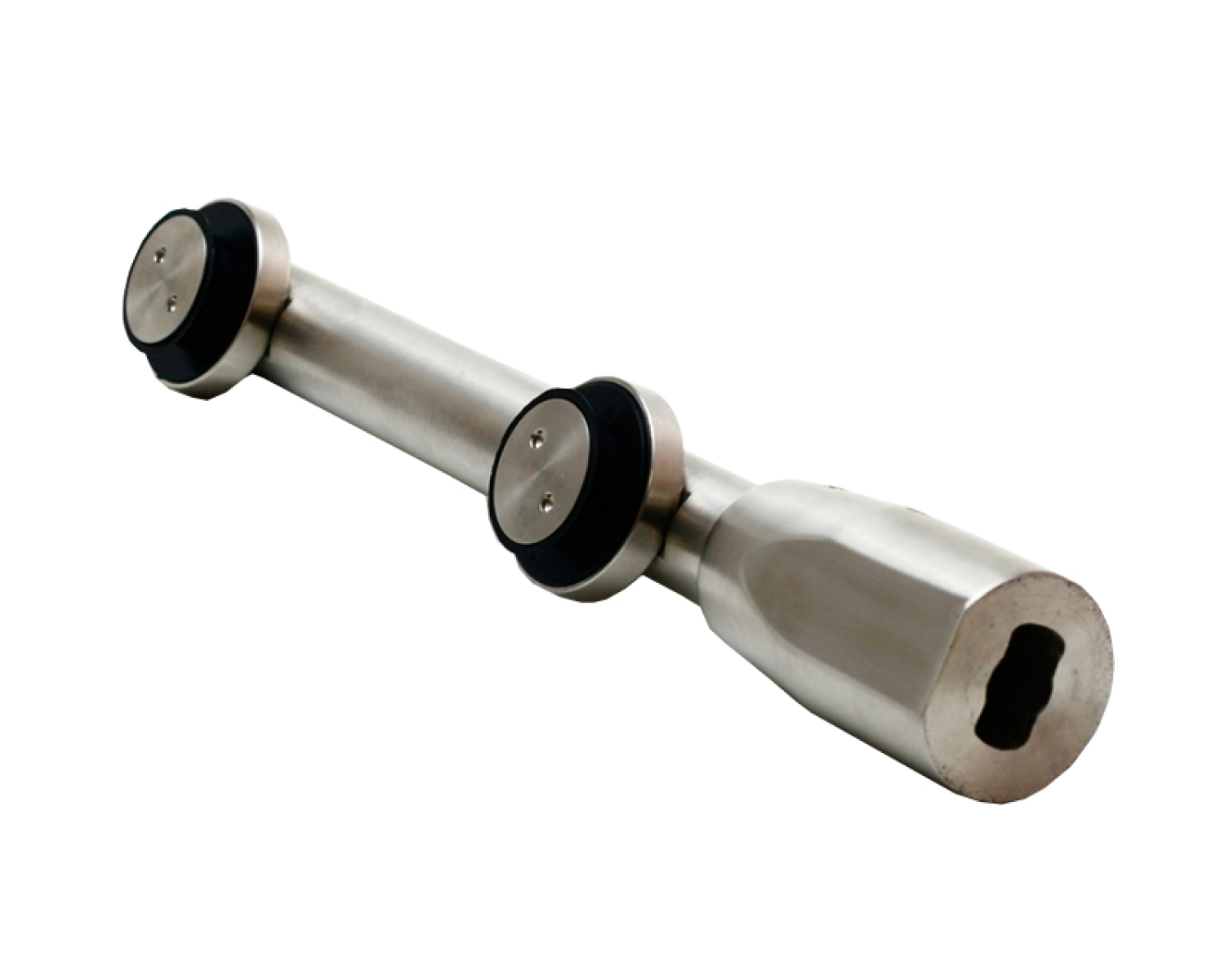 Нижня петля для маятникових скляних дверей виконана із цільного шматка нержавіючої сталі марки sus304, що дозволяє нести підвищені навантаження, відповідно проєктувати конструкції ширше та вище звичайних. А унікальний дизайн підійде для тих, кому до вподоби стиль Хай-тек.