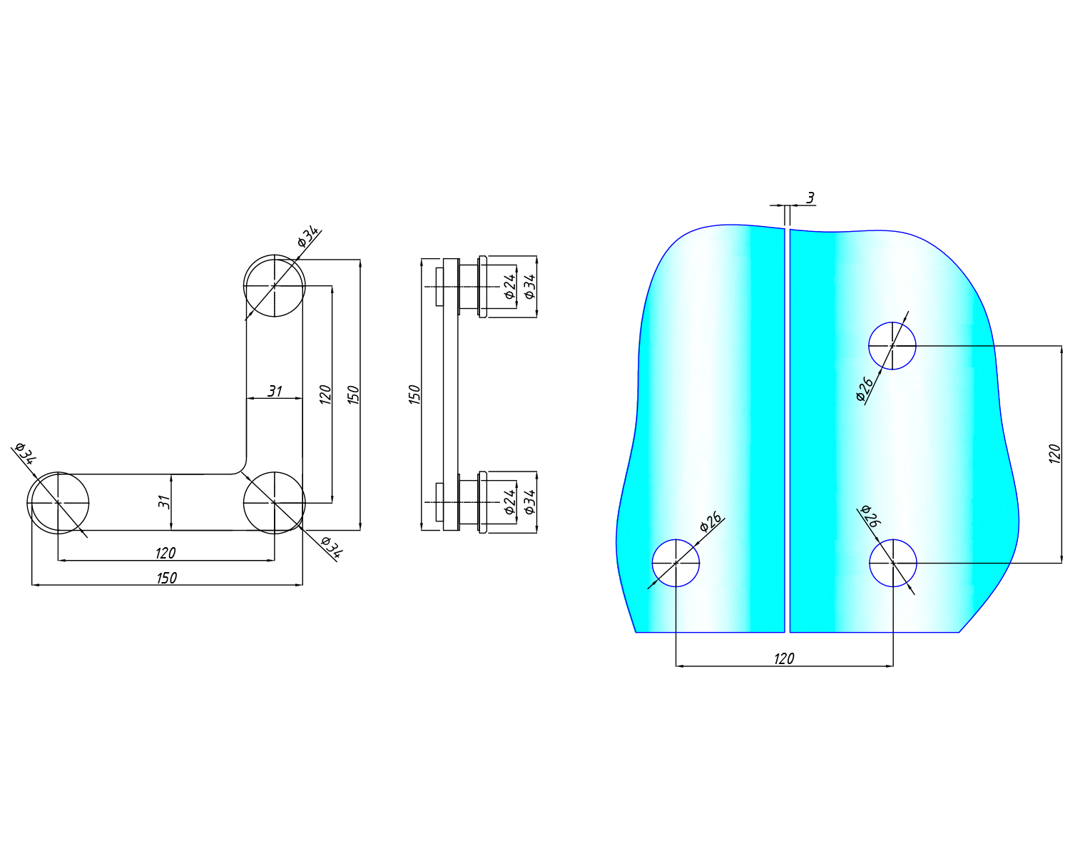 Фітинг виготовлений із нержавіючої сталі марки SUS304 товщиною 10 мм, що гарантує його міцність і стійкість до деформацій навіть при щоденному інтенсивному використанні. Оснащений трьома точковими кріпленнями, він забезпечує надійну фіксацію скла без ризику зміщення або перекосу.