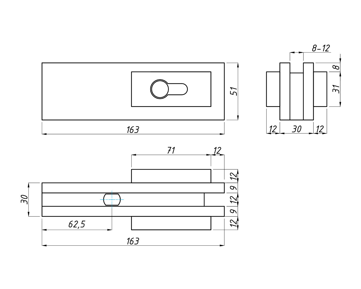 Цей замок використовується в маятникових скляних конструкціях з товщиною скла