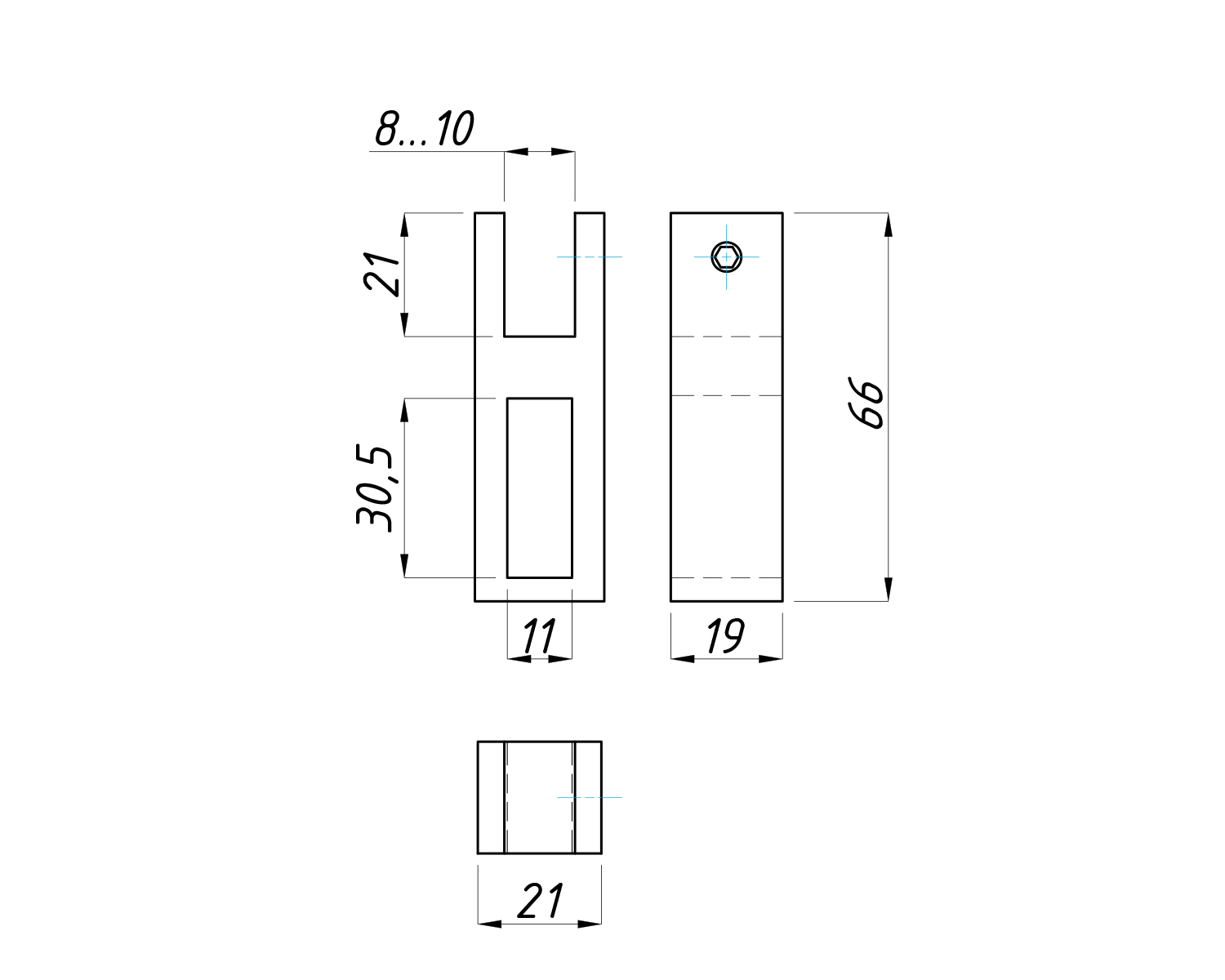 Кріплення для труби прямокутного перетину 30*10 скло-труба для душових кабін