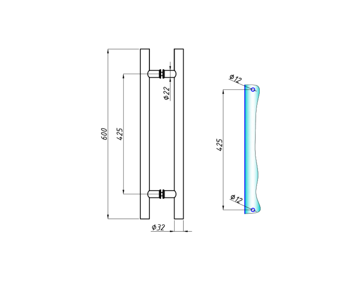 Довжина ручки 450 мм, міжвісьова відстань 300 мм, діаметр 32 мм.