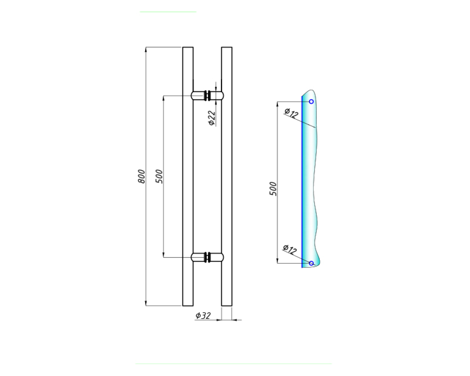 Довжина ручки 450 мм, міжвісьова відстань 300 мм, діаметр 32 мм.