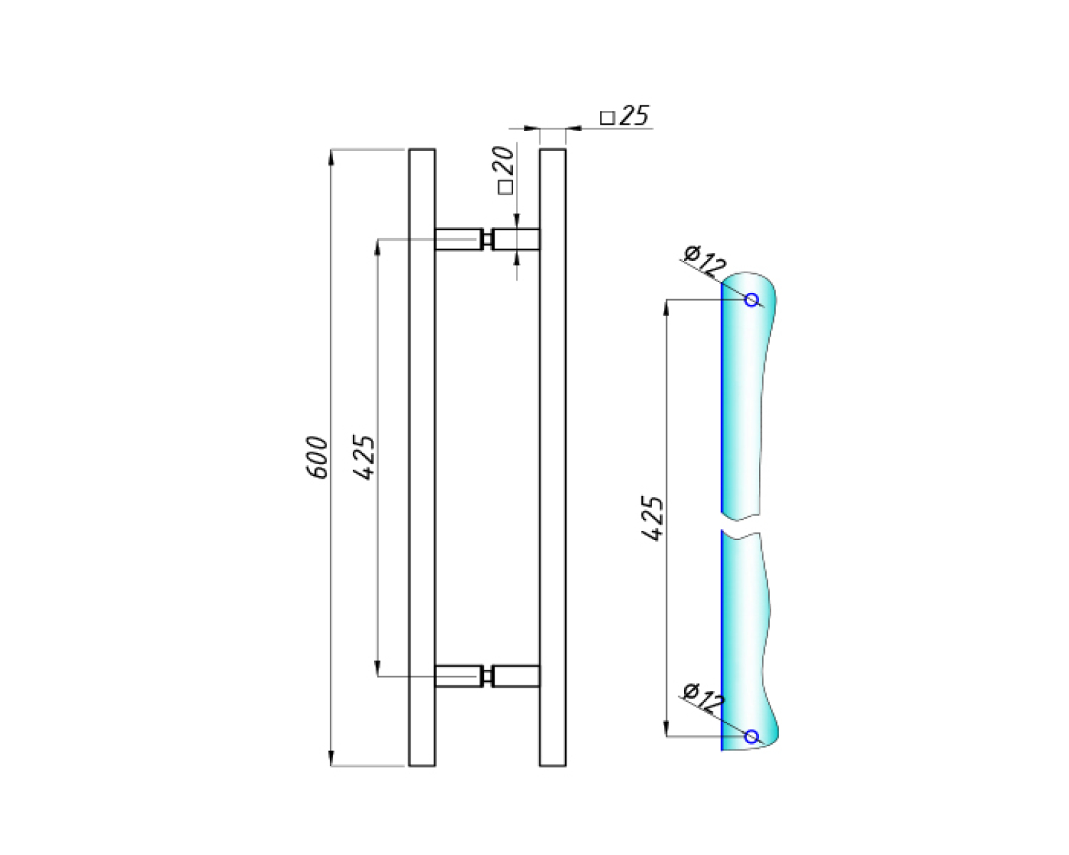 Офісна ручка виготовлена з нержавіючої сталі марки sus304 для скла 8-12 мм.