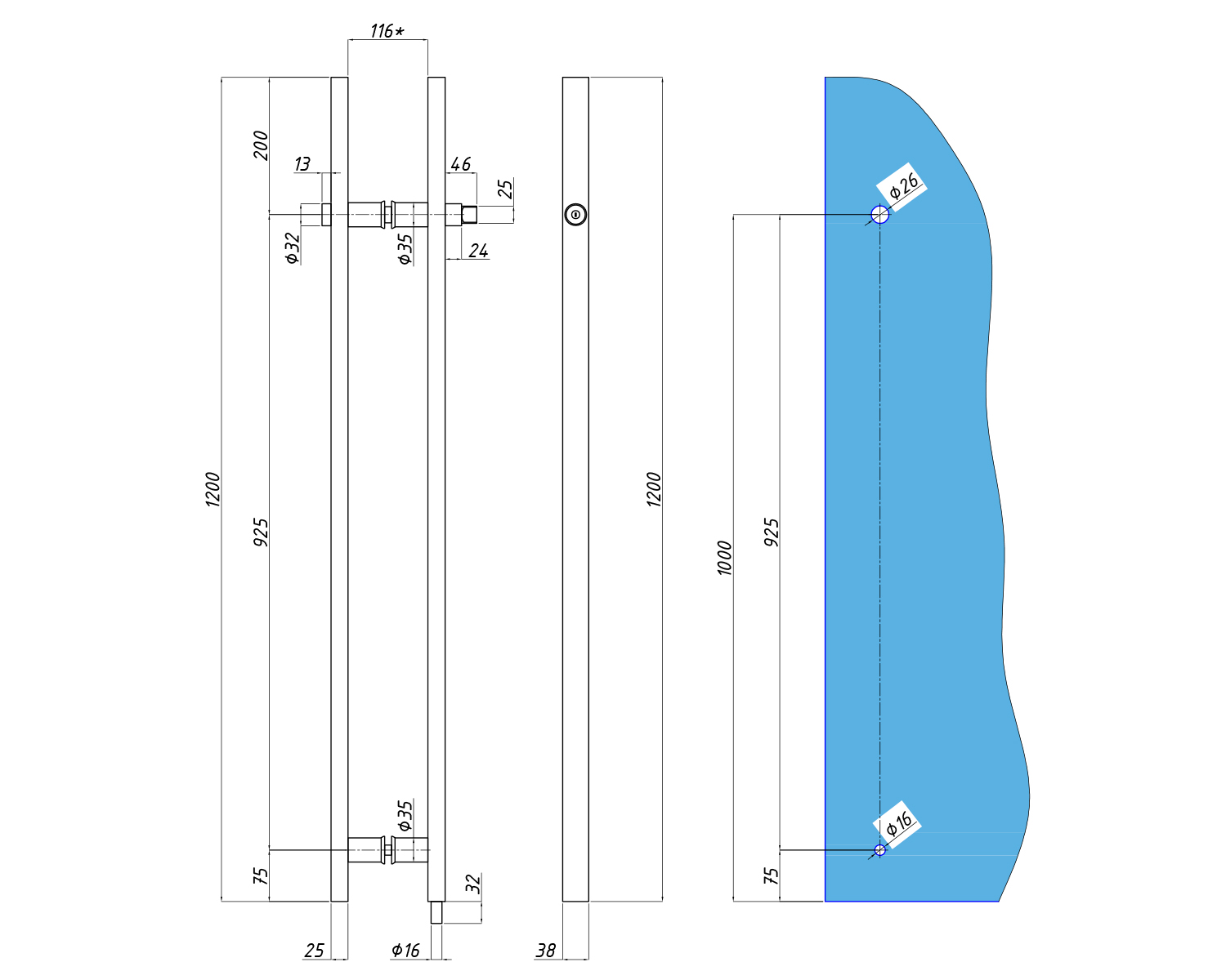 - Розташування замка: на висоті 925 мм від нижнього краю ручки