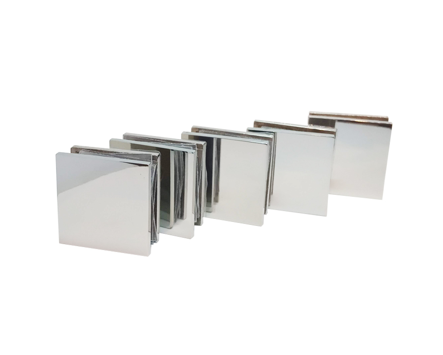Сет состоит из 5 коннекторов для душа, выполненных из нержавеющей стали для крепления стекла к стене или полу под углом 90 градусов.