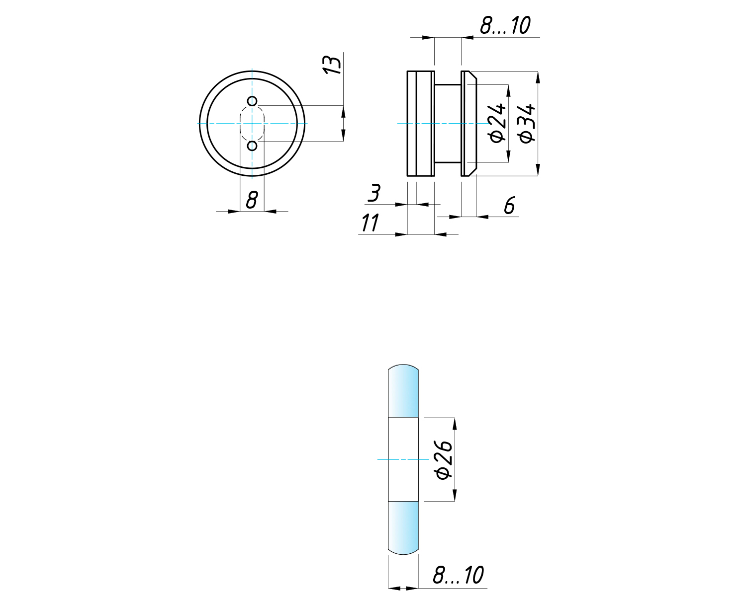 В основі склотримача є виріз овальної форми, що дозволяє кріпити його до несучої конструкції та дає невеликий простір для регулювання по площині.