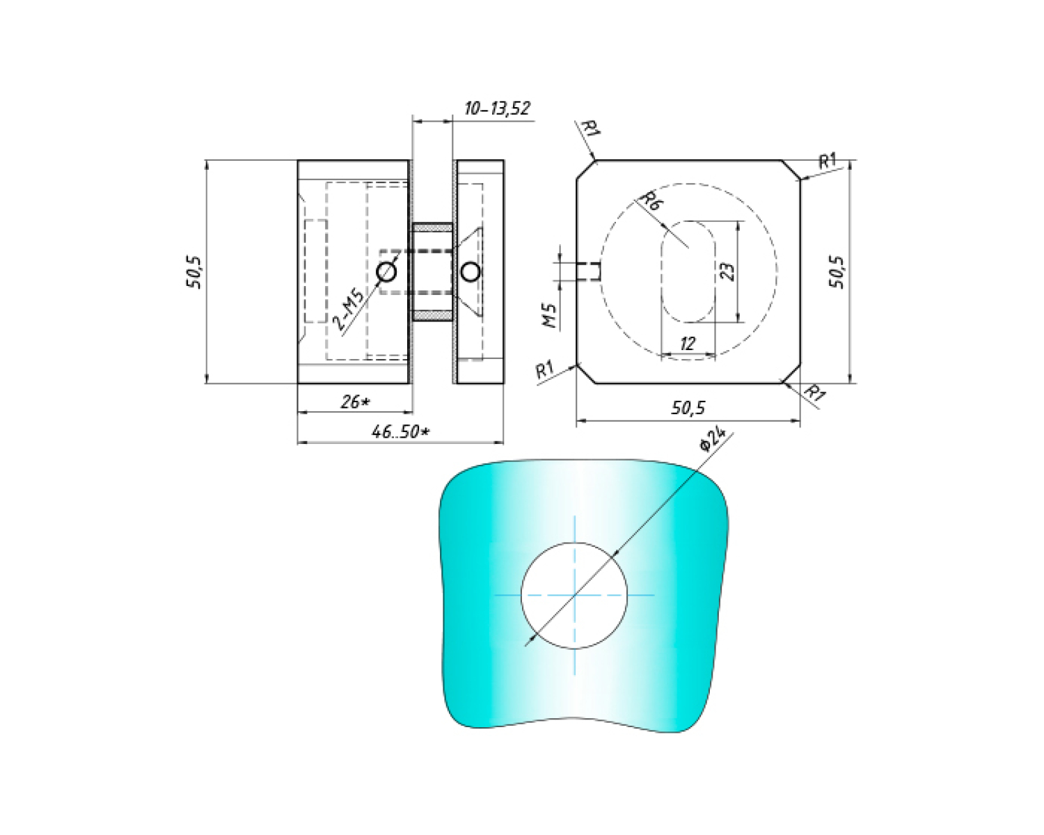 В основі склотримача є виріз овальної форми, що дозволяє кріпити його до несучої конструкції та дає невеликий простір для регулювання по площині.