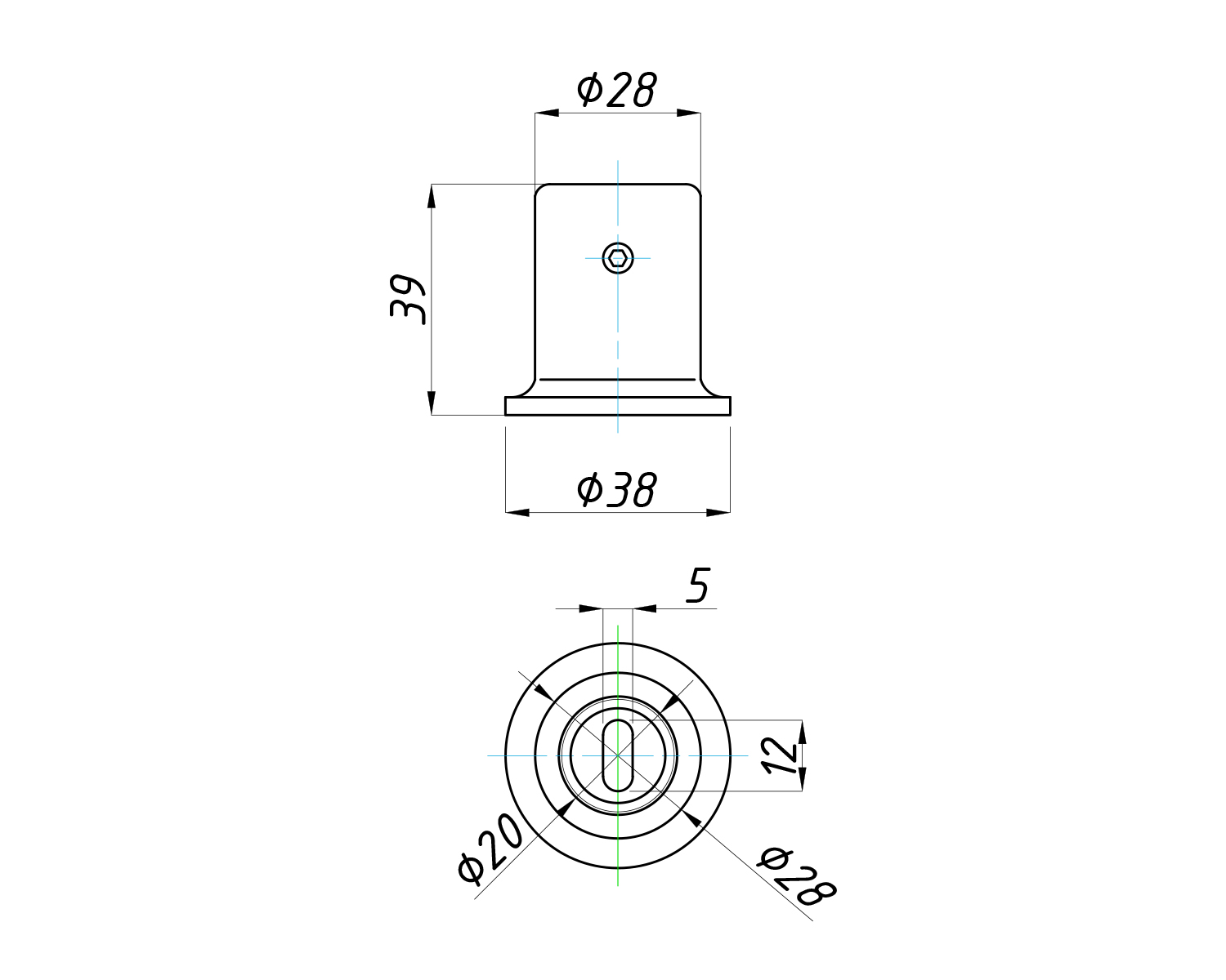 Торцеве кріплення для труби круглого перетину діаметром 19 мм ідеально підходить для ванних кімнат.