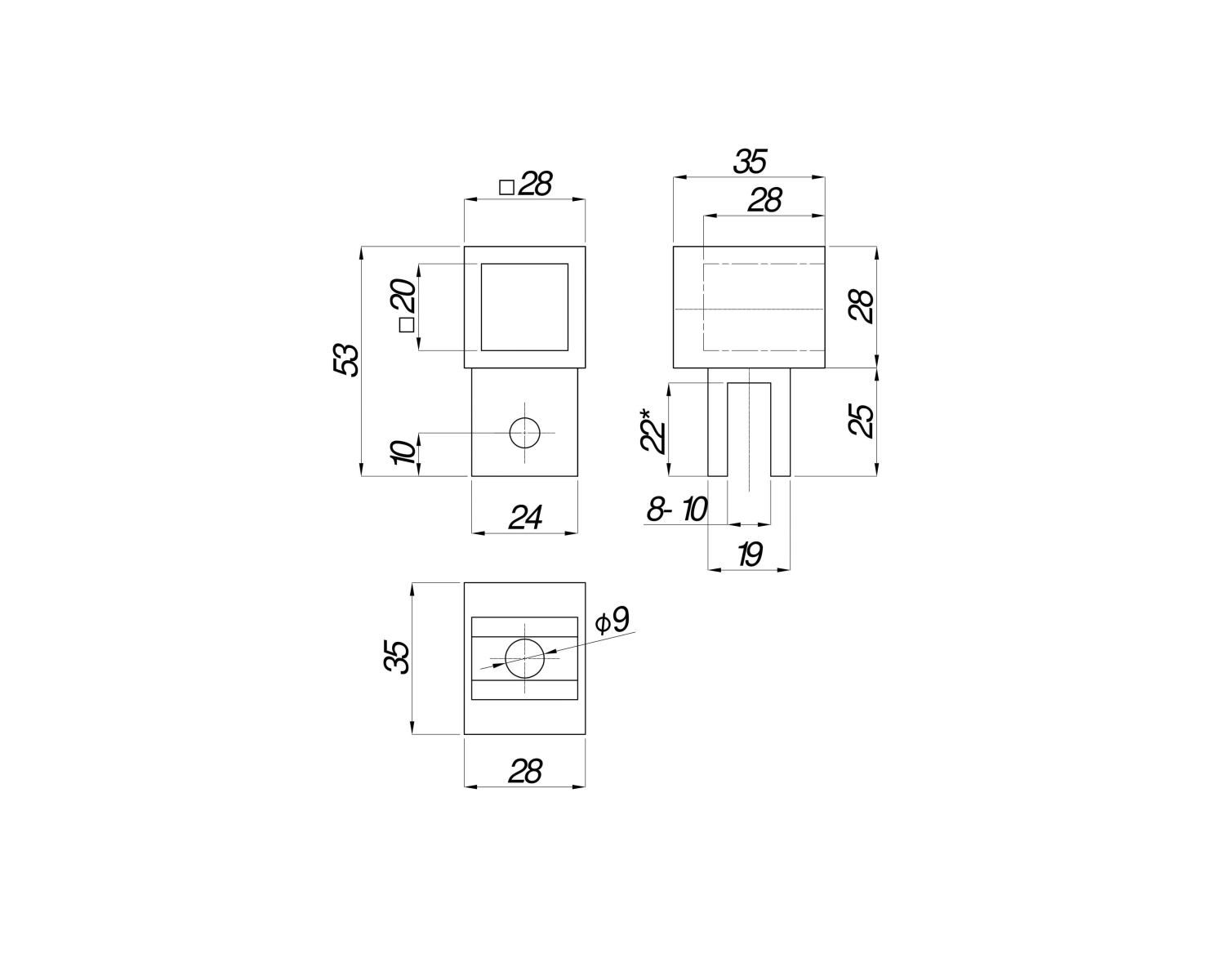 Конструкція закритого типу конектора для душових кабін дозволяє використовувати це кріплення як закінчення штанги жорсткості.