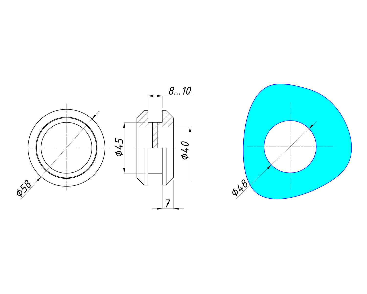 Діаметр ручки становить 57 мм, що дозволяє безперешкодно повністю зрушити дверне полотно за стіну або фіксовану панель. Це особливо важливо при встановленні розсувних систем у вузьких проходах або приміщеннях з обмеженим простором, де важливо забезпечити максимально вільний прохід.