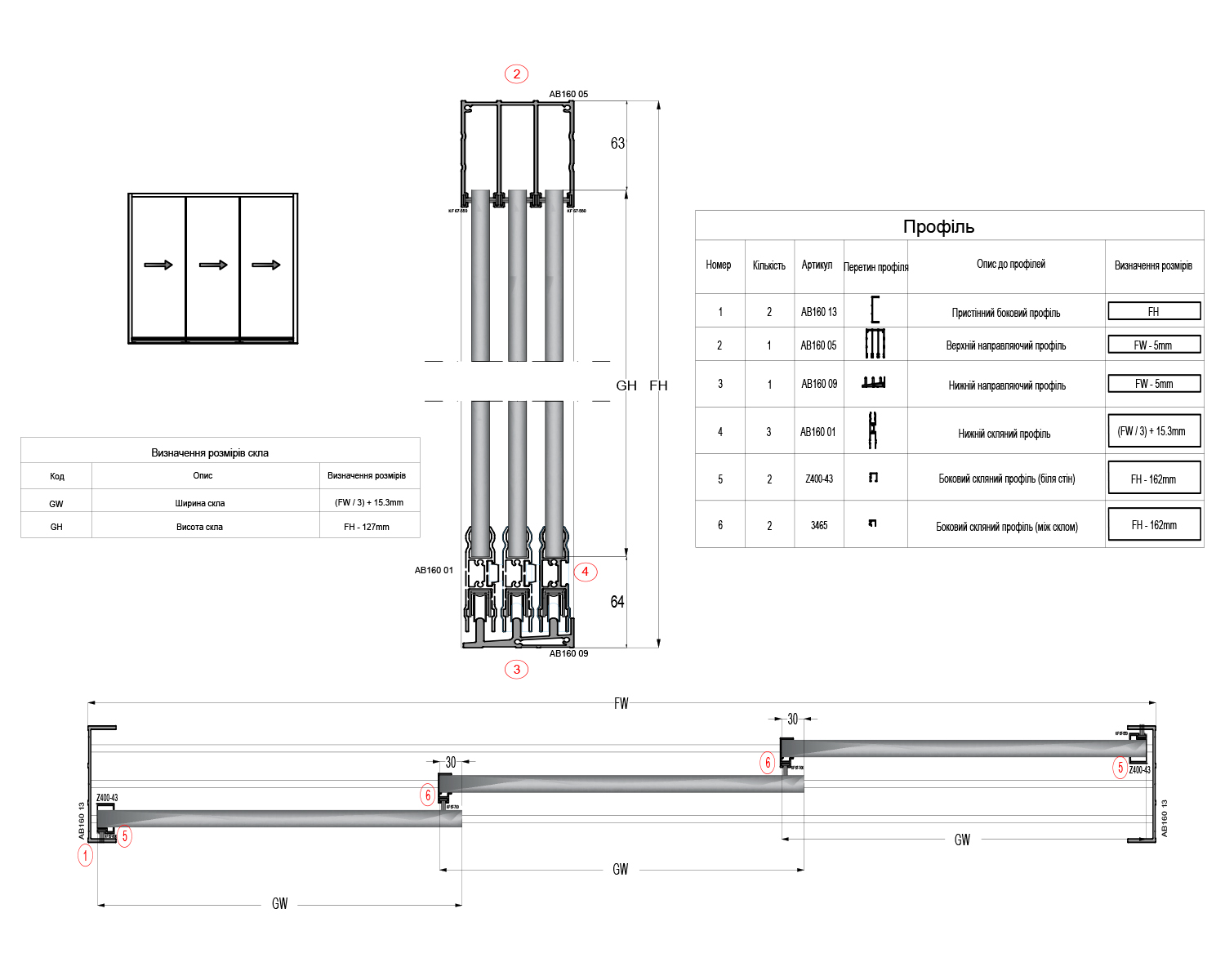 | AB160 05 Верхній профіль 3 м | 1 | шт |