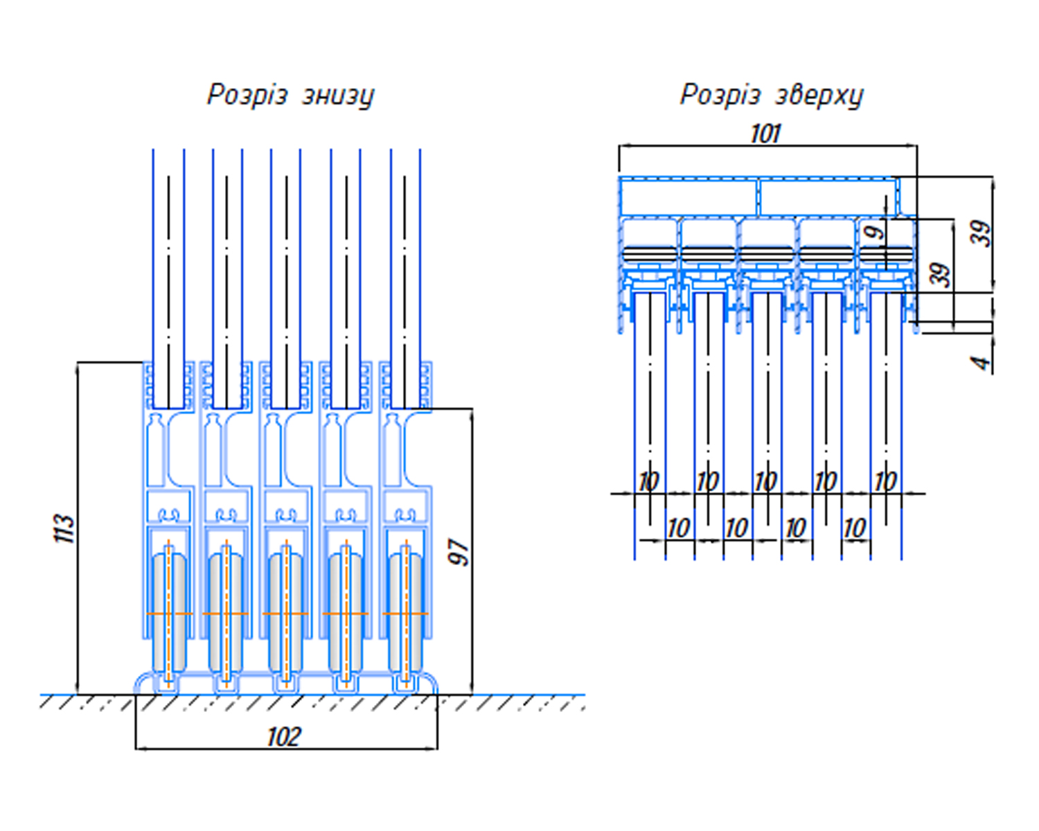 | AB100-3457 Верхній боковий профіль 5 рельсів | 12 | пог.м. |