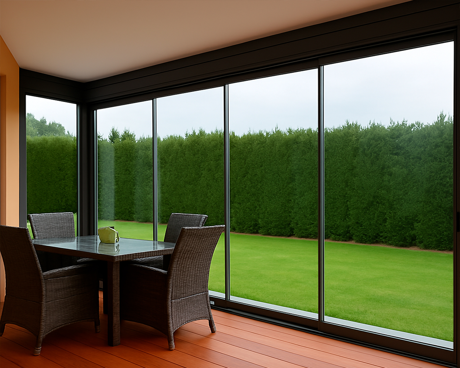 Слайдингова система на п’ять стулок — це вдале рішення для великих отворів, яке поєднує елегантний зовнішній вигляд, сучасні технічні рішення та надійність конструкції. Вона дарує простір, світло і комфорт без компромісів.