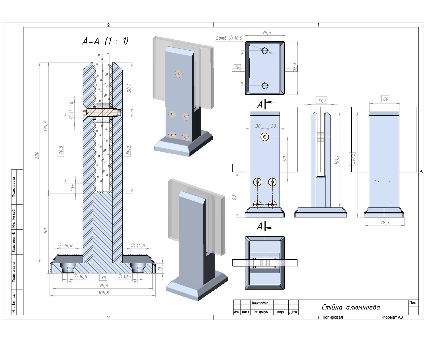 Стійка для скла виготовлена під алюмінієву стійку. Висота стійки 210 мм.
