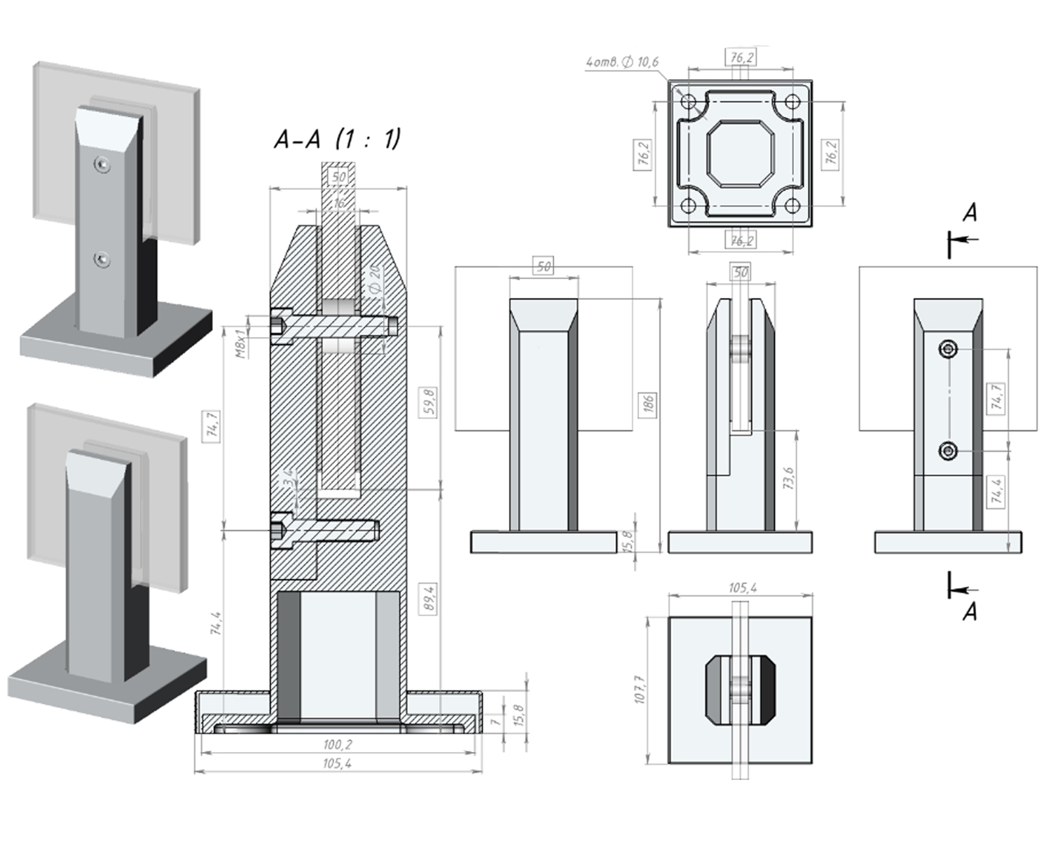 Опис Стійка для скла V320, SUS-316