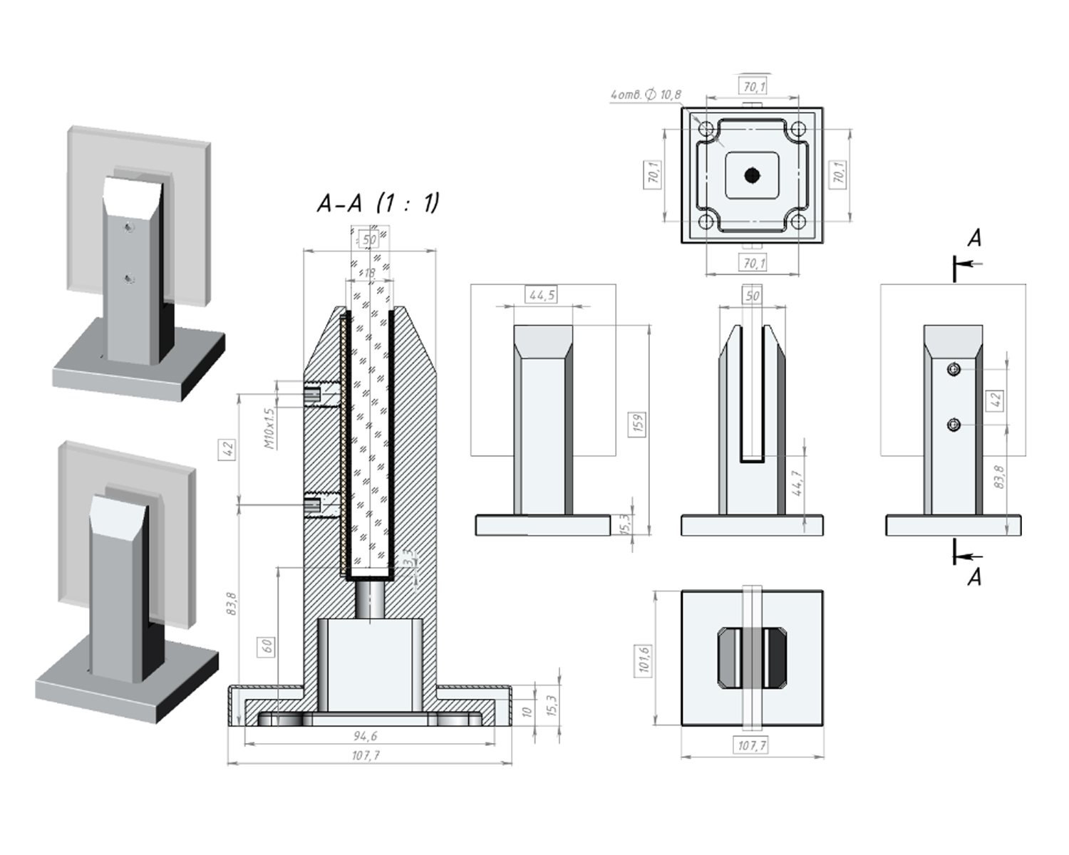 Опис Стійка для скла V320, SUS-316 без вирізу
