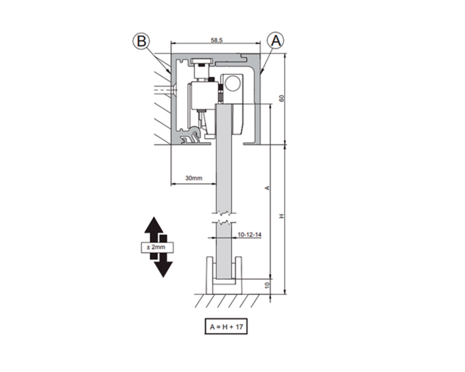 Направляюча рейка виконаний з товстостінного алюмінію та має розміри 60*58,5 мм. Такий розмір профілю обумовлений не тільки навантаженнями, з якими йому доведеться працювати, а й тим, що направляюча рейка повністю дозволяє заховати всі комплектуючі самої розсувної системи, ролики з затискачем та стопори.