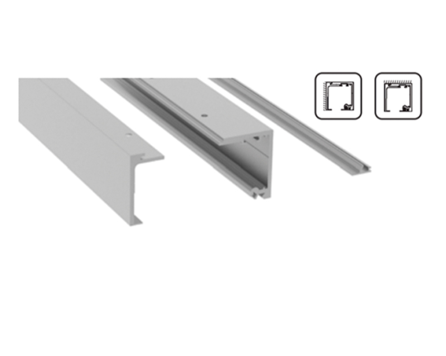 Рейок для розсувних систем оснащений знімною декоративною кришкою, що дозволяє кріпити його як на стіну, так й у стелю. Так само є два варіанти кріплення профілю до стіни, основною частиною та декоративною, що дозволяє змінювати відстань від стіни до скла в діапазоні від 19 до 30 мм.