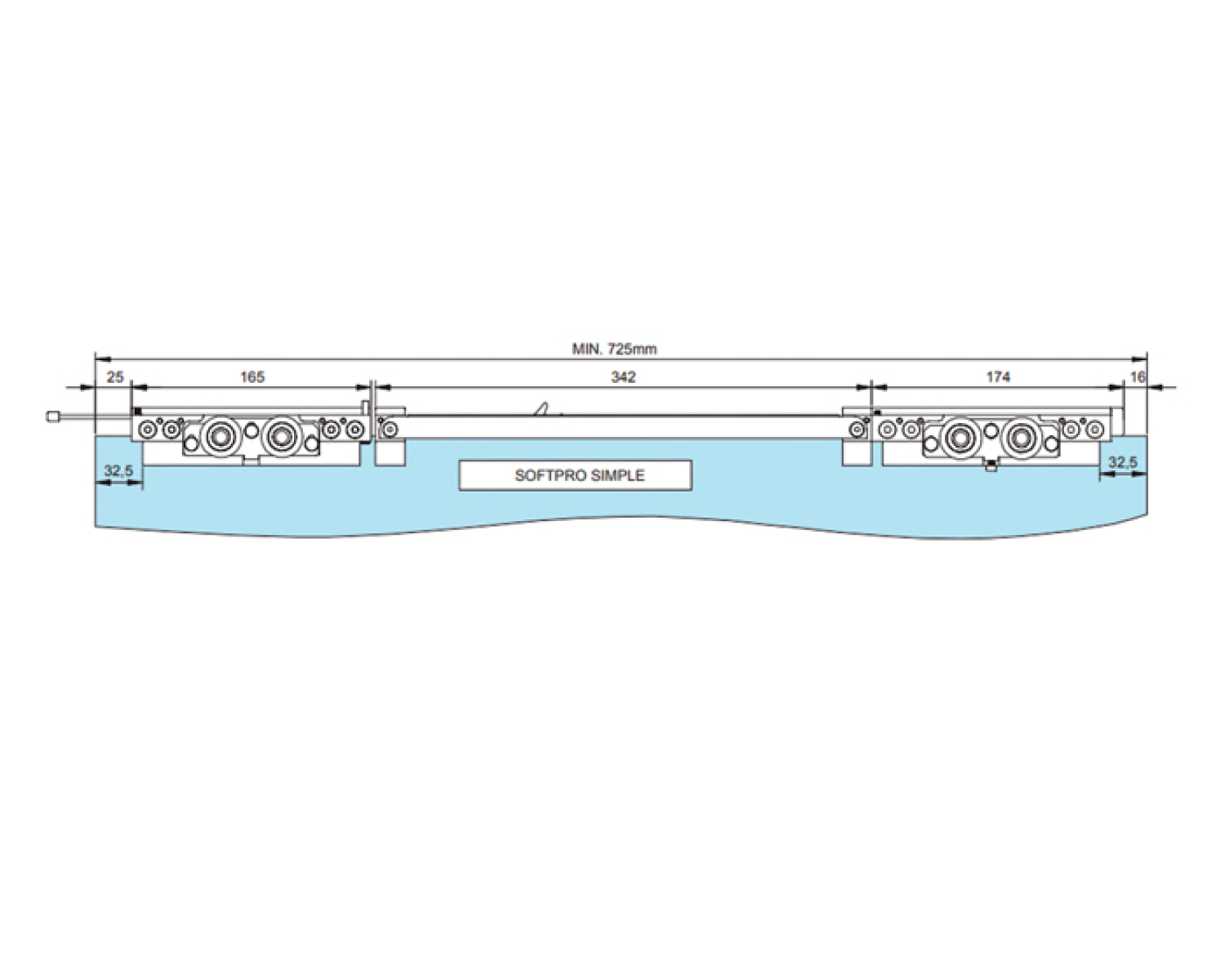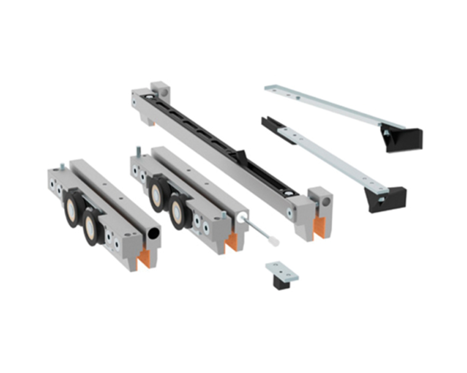 Використання високоякісного сплаву, а також спеціальних роликів забезпечує високу надійність, тихохідність розсувної системи та дозволяє без проблем справлятися з вагою дверей до 110 кг. Мінімальна ширина стулки розсувної системи 725 мм.