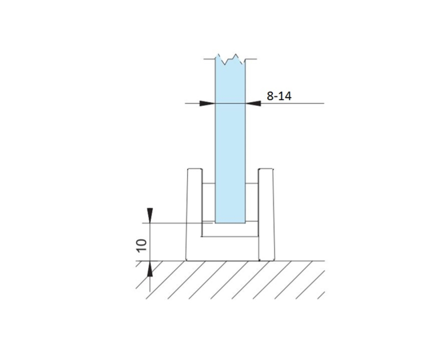Основною функцією нижньої напрямної є обмеження поперечного ходу стулки розсувної системи. Направляюча рейка має спеціальну пластикову вставку, за допомогою якої можна адаптувати направляючу під використовуване скло.