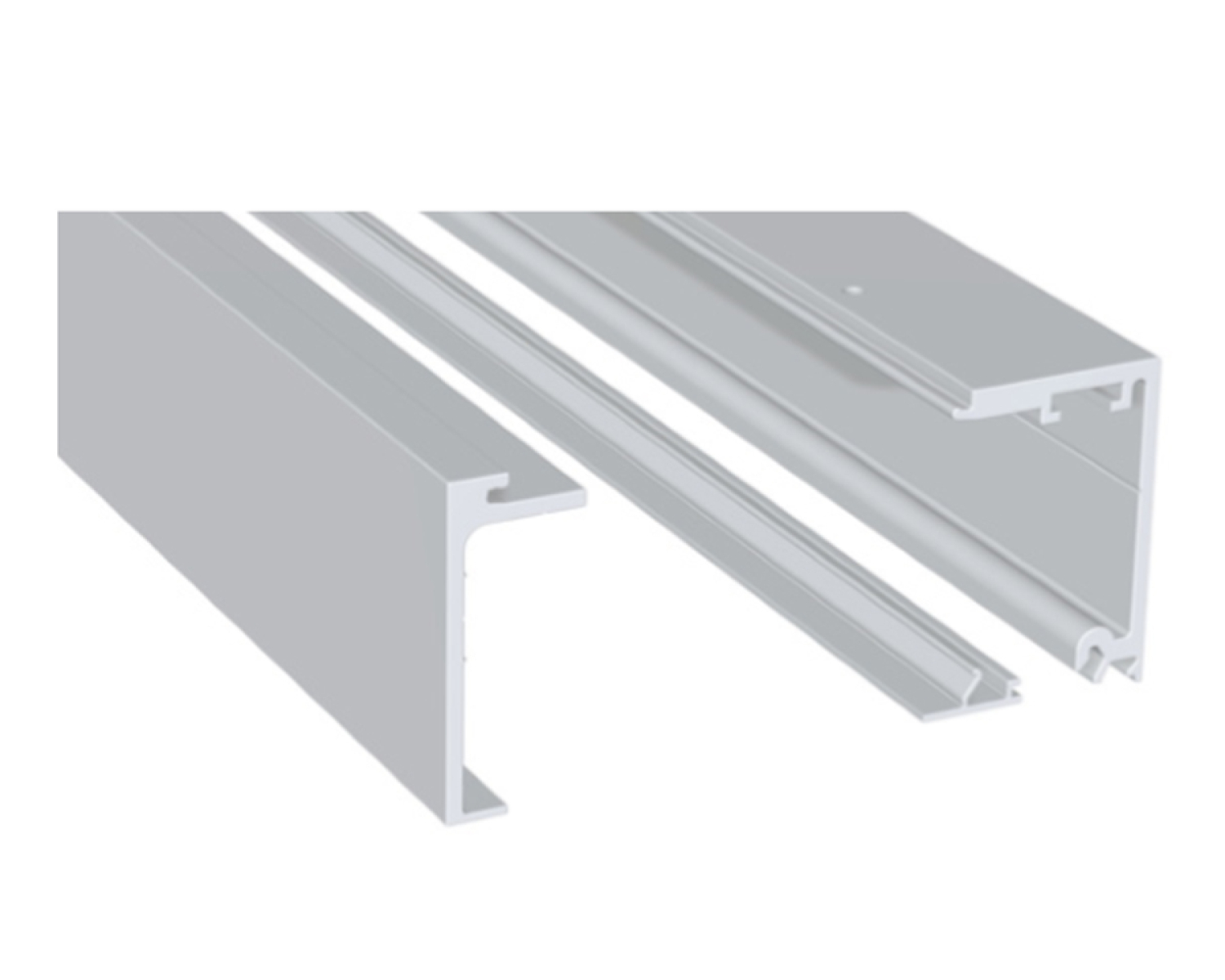 Рейок для розсувних систем оснащений знімною декоративною кришкою, що дозволяє кріпити його як на стіну, так й у стелю. Так само є два варіанти кріплення профілю до стіни, основною частиною та декоративною, що дозволяє змінювати відстань від стіни до скла в діапазоні від 14 до 25 мм.